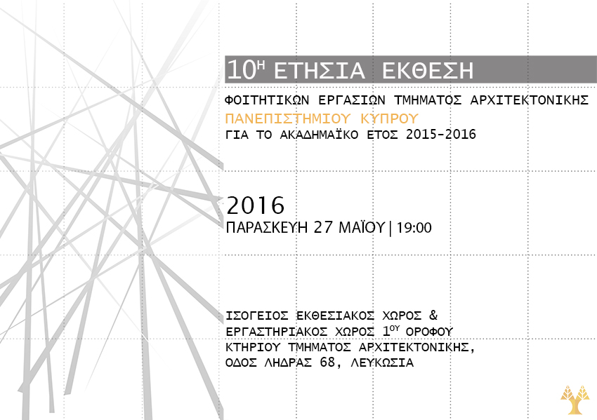 Το Τμήμα Αρχιτεκτονικής Πανεπιστημίου Κύπρου διοργανώνει την 10η Ετήσια Έκθεση Φοιτητικών Εργασιών για το ακαδημαϊκό…