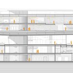 Τα διαμήκη κενά μεταξύ τους επιτρέπουν τις φυγές ανάμεσα στην πόλη και το ποτάμι. Το βιοκλιματικό στέγαστρο ορίζει τον κενό χώρο και την είσοδο του κτιρίου. Η υπερύψωση των όγκων επιτρέπει να ελευθερωθεί το επίπεδο του εδάφους για να διαμορφωθεί ο μεγάλος δημόσιος χώρος της πόλης.