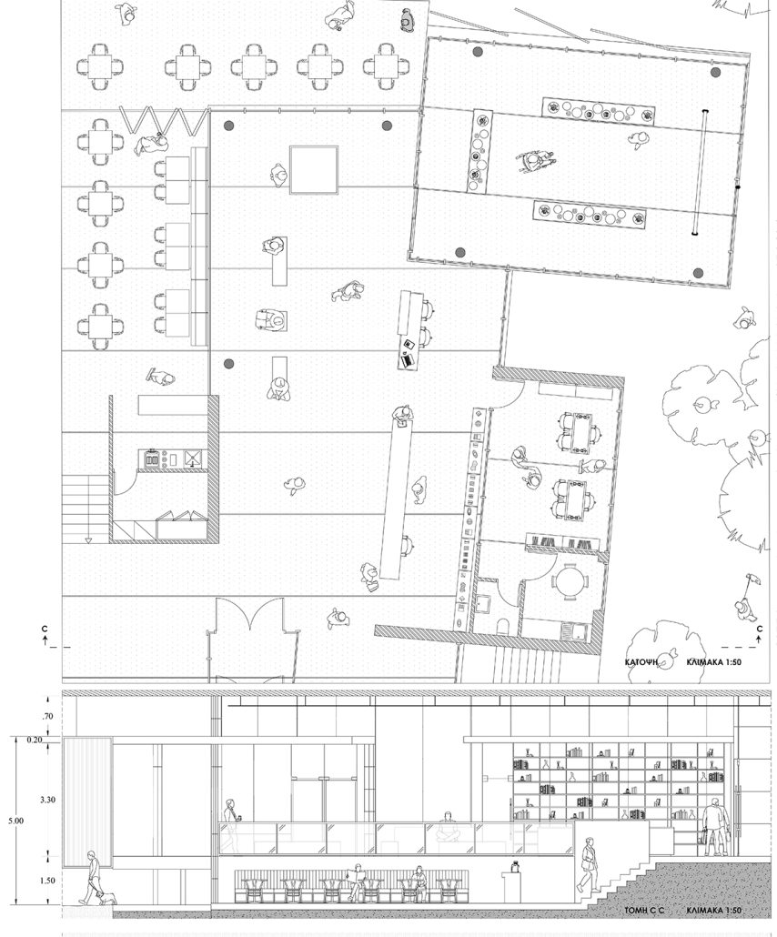 Τοποθετείται στο μέσο του κτηρίου δίπλα από το εργαστήριο. Μπορεί δυνητικά να απομονωθεί αλλά και να ενωθεί με το υπόλοιπο κτίριο στο εσωτερικό αλλά και οπτικά με το πάρκο στα βόρεια.