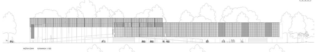 Σε αυτή συμβάλλουν το μακρόστενο σχήμα του κτηρίου, το άνοιγμα στα νότια και το σχετικό κλείσιμο στα βόρεια, η χρήση σκιάστρων, και η οριζόντια διαμπερότητα του.
