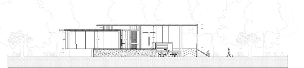 Ένα εξ ολοκλήρου διαφανές κάθετο όριο που ταξιδεύει σχετικά ανεξάρτητα από τα κουτιά μεταξύ της πλατφόρμας και του στεγάστρου. Λόγω της διαφάνειας, η σχέση μεταξύ του μέσα και του έξω είναι ρευστή και ρυθμίζεται ανάλογα με τις ανάγκες του χώρου από εξωτερικά σκίαστρα.