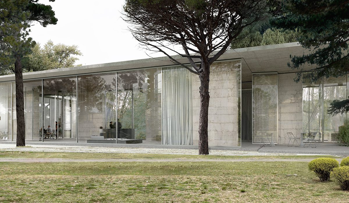 Κεντρικός πυρήνας της πρότασης αποτελεί το νέο Κέντρο Περιβαλλοντικής Ενημέρωσης, ένα pavilion ανοιχτό στο τοπίο. Ο όγκος του διασπάται σε επιμέρους λειτουργικά clusters, τα οποία διατάσσονται οργανικά στην περιοχή μελέτης, ακολουθώντας τις φυσικές χαράξεις των υφιστάμενων μονοπατιών, καθώς και τη θέση των μεγάλων δέντρων που διατηρούνται. Το κτίριο δομείται μέσω ενός στατικού συστήματος κατακόρυφων τοιχίων από συμπιεσμένο χώμα, με μικρή περιεκτικότητα σκυροδέματος ως σταθεροποιητή.
