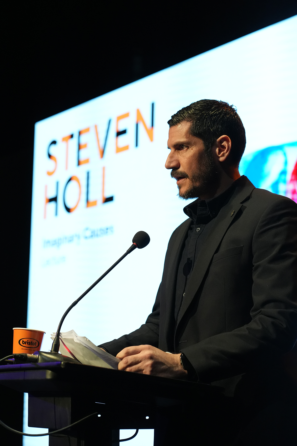 Κατά τη παρουσίασή του, ο Steven Holl ανέπτυξε τη φιλοσοφική και συνθετική του προσέγγιση στην αρχιτεκτονική, αναδεικνύοντας τη σχέση της ιδέας με τον χώρο, το φως και την ανθρώπινη εμπειρία. Μέσα από επιλεγμένα έργα και σκέψεις γύρω από τη δημιουργική διαδικασία, ο ομιλητής μοιράστηκε με το κοινό πτυχές της αρχιτεκτονικής του σκέψης και πρακτικής.
